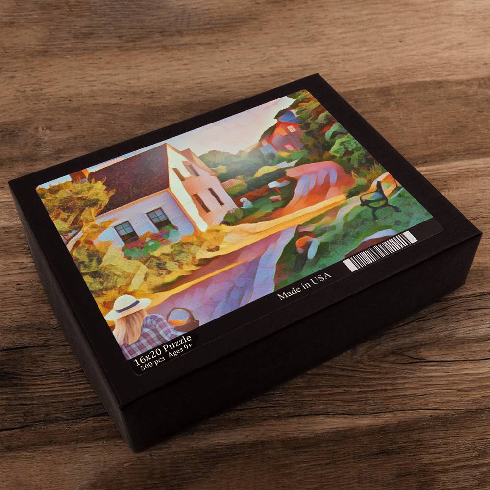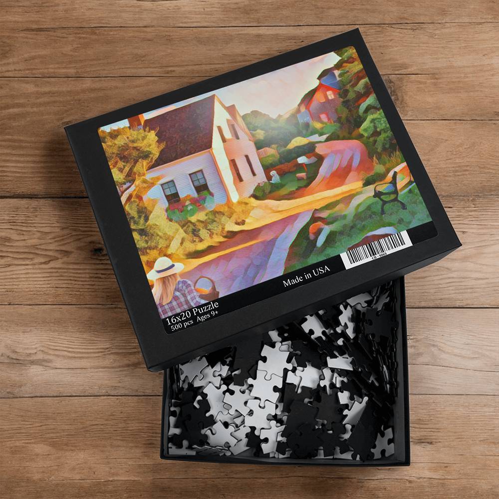 Searching for a playful way to celebrate moments? Discover Our 16" x 20" "Country Dream" Puzzle! Ideal for creating memorable experiences, your puzzle comes in a sleek black box, showcasing the finished picture on the front. Inside, you'll find 500 high-quality, satin-finished pieces featuring your unique design. Turn downtime into joyful moments with this enjoyable puzzle, perfect for adding fun to any gathering.
