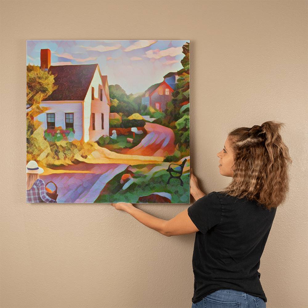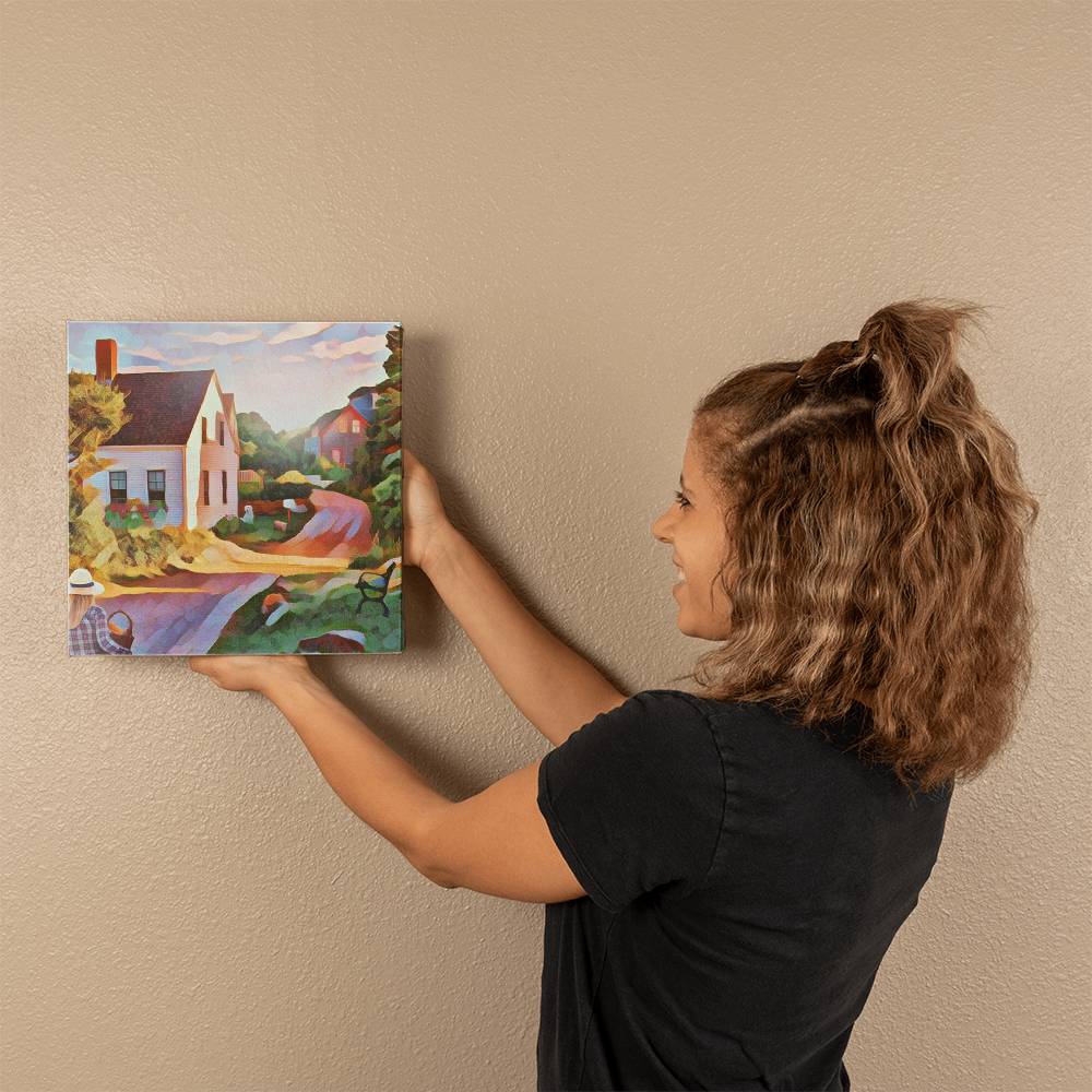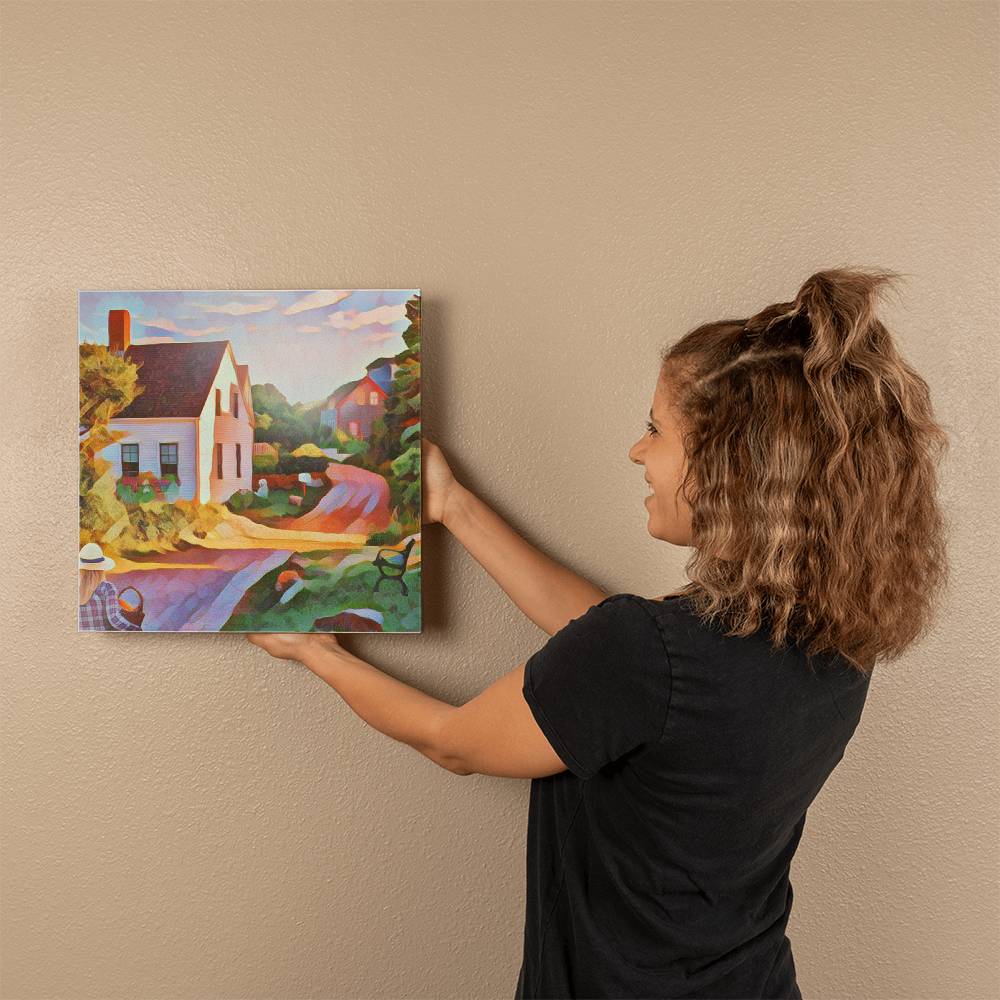 Your canvas will be custom made upon order. You can expect a professionally, all over printed design that hangs from aluminum sawtooth mounts.