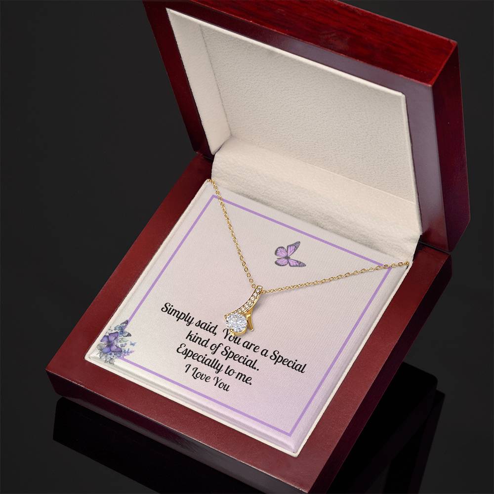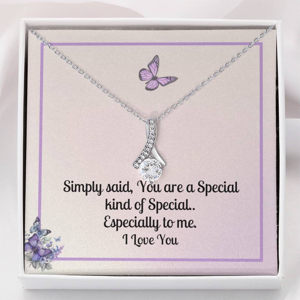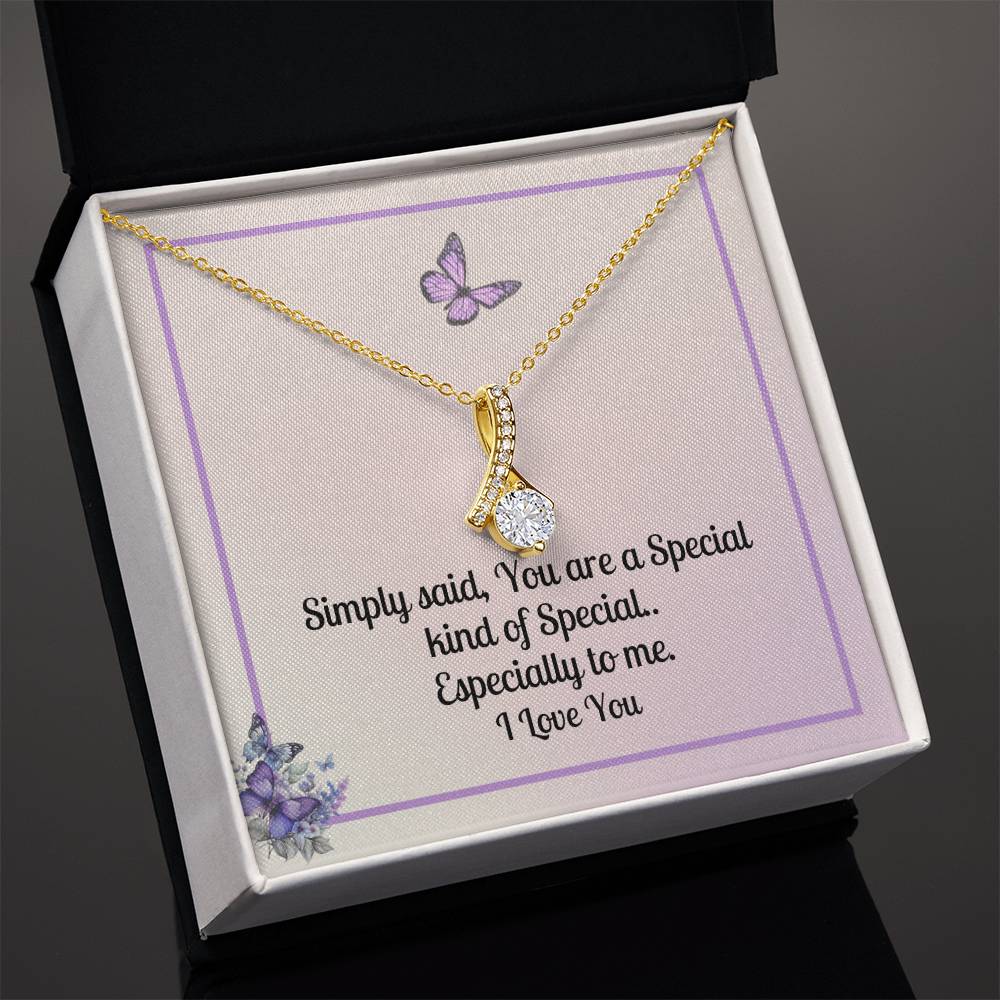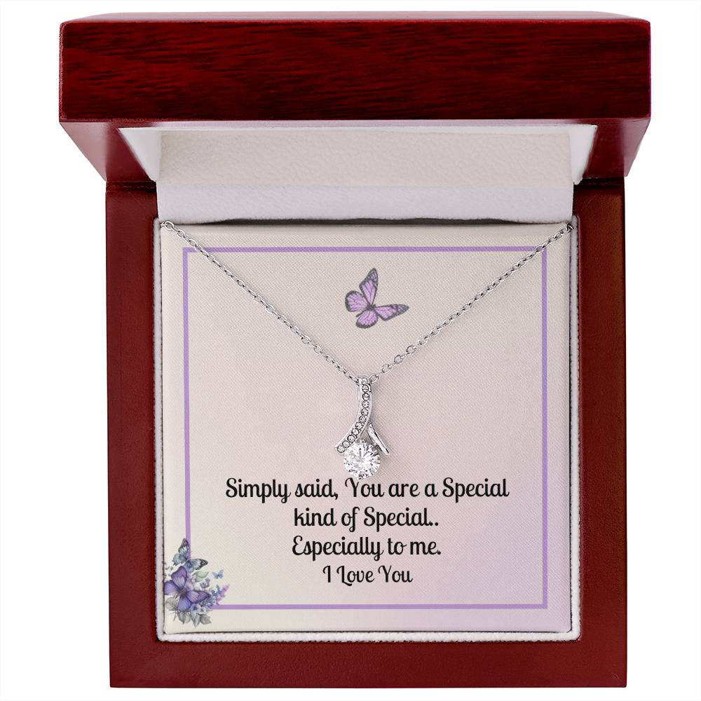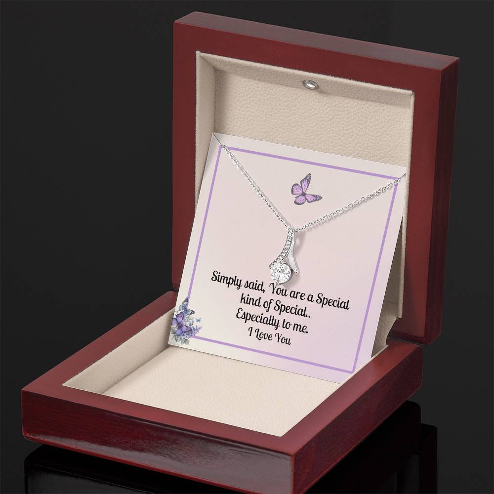 Imagine her reaction when she opens this stunning gift! The Alluring Beauty necklace features a petite ribbon shaped pendant that is sure to dazzle your special someone. Whether it's a birthday or anniversary, make sure to get her a gift she will love for years to come.