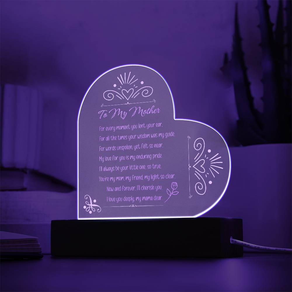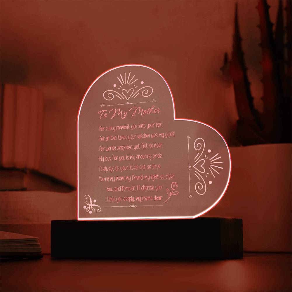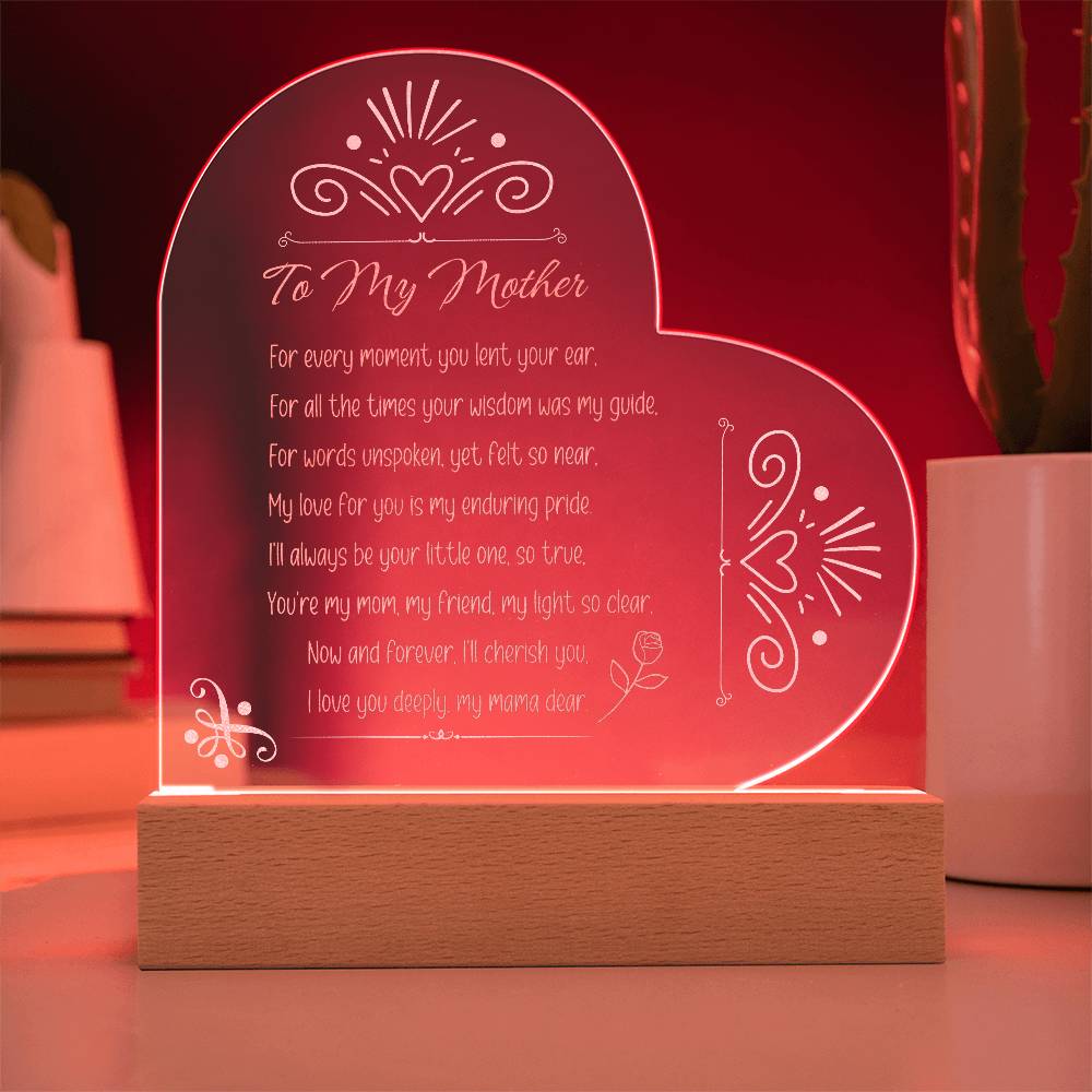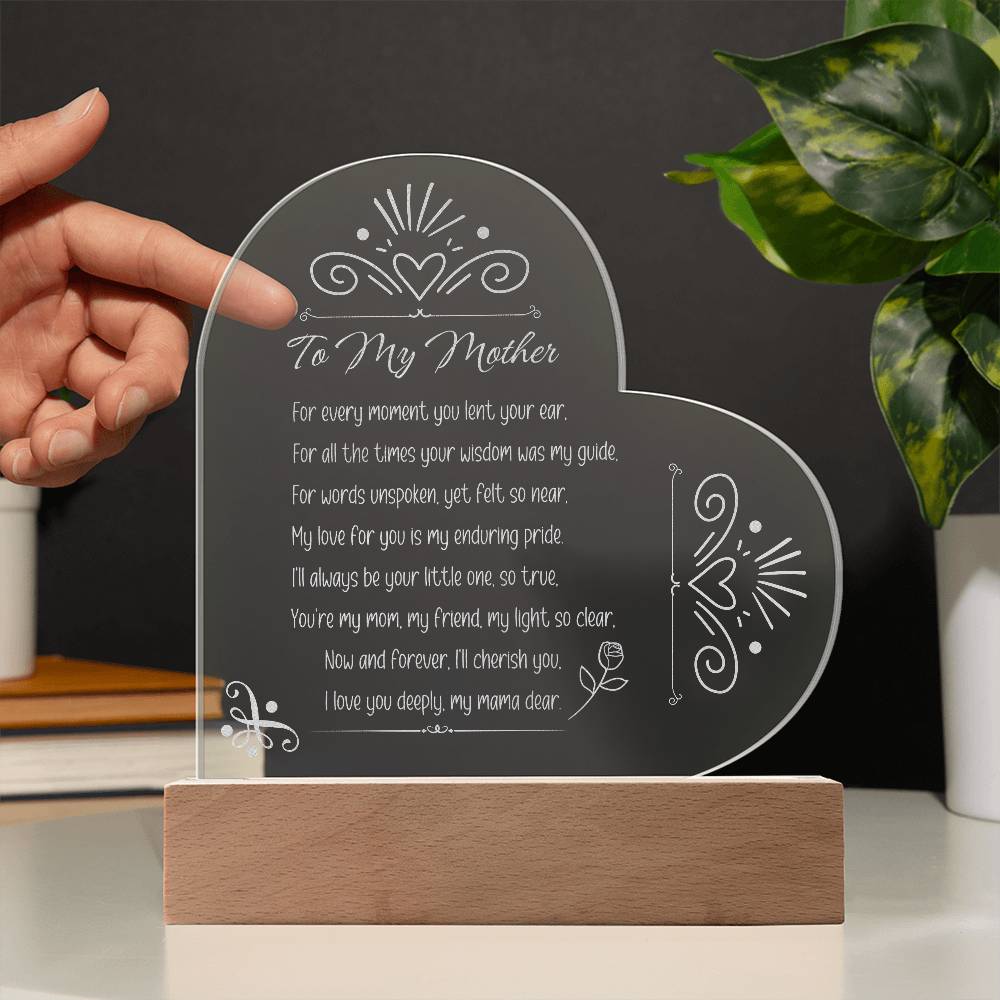 For FAMILY: Engraved Acrylic Heart Plaque (Mom)