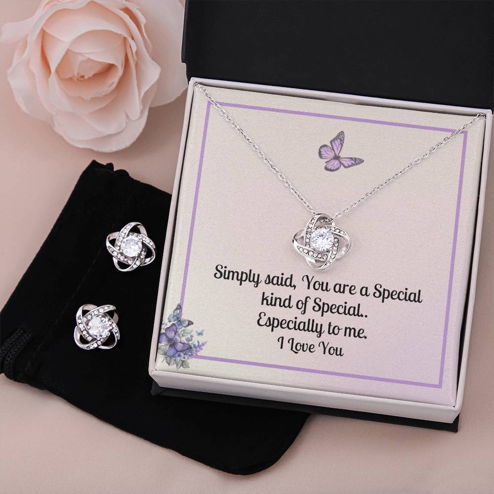 Surprise your loved one with this gorgeous Love Knot Earring & Necklace Set!